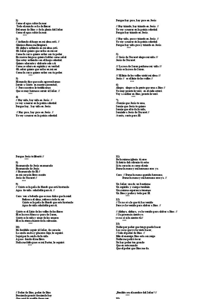 Letras De Coros - Coros pentecostales con letra (cadena de coros).
