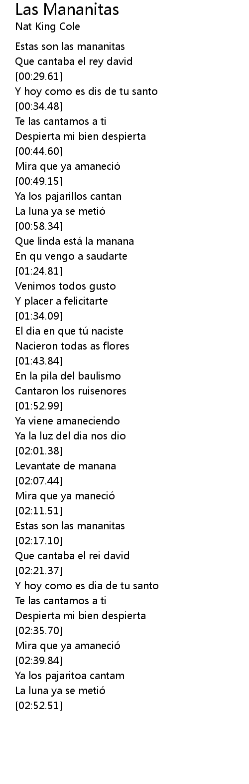 Las Mananitas Lyrics Follow Lyrics - Las mananitas sung by chayita valdez, is a mexican folk song for birthday celebration with spanish lyrics and english translation, great for students who.