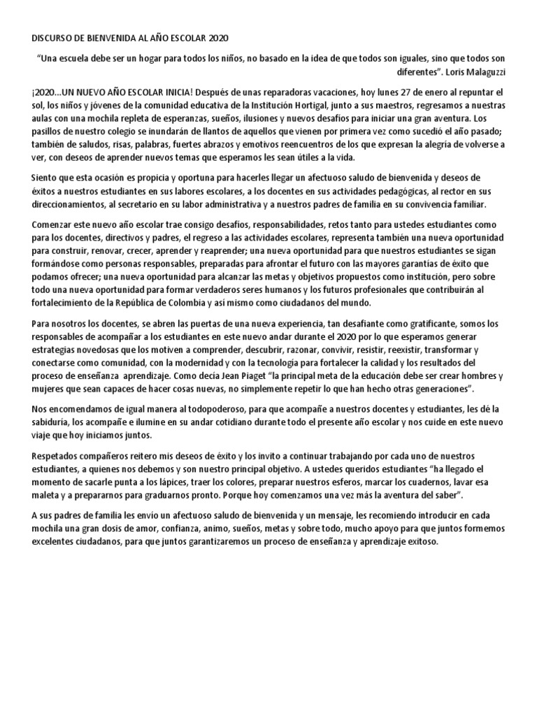 Discurso De Bienvenida Al Ano Escolar 2020 Modificacion De Comportamiento Cognicion - Informacion horarios de clase y examenes horarios de clase y examenes y calendario academico aviso importante sobre el temporal de nieveaparte de.