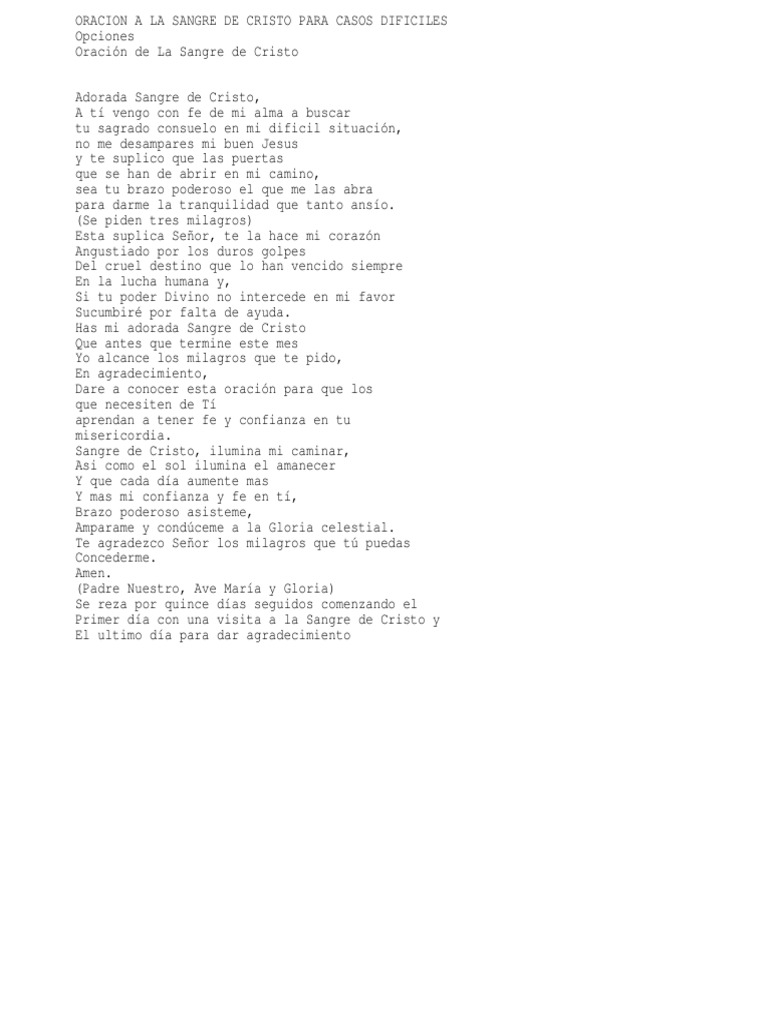 Oracion A La Sangre De Cristo Para Casos Dificiles / Domingo, 10 de abril de 2016. Oracion A La Sangre De Cristo Para Casos Dificiles : Blessed nina blanca, tonight,i come before you,and on my knees i admit.