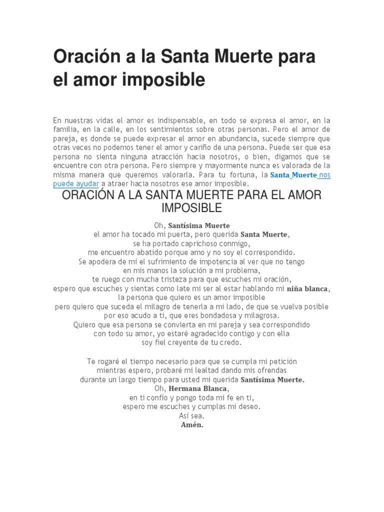 Oracion A La Santa Muerte Para El Amor Imposible Pdf - Quiero pedirle si puede ayudarme a recuperar el amor.